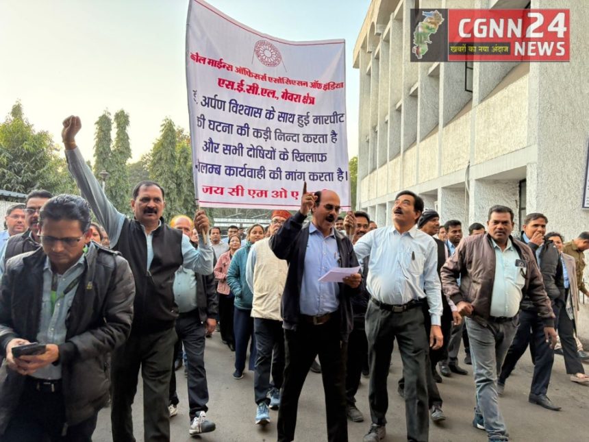 कोरबा/सीजी एन एन 24 न्यूज:– कोरबा जिले के गेवरा महाप्रबंधक कार्यालय में मंगलवार को सीएमओएआई गेवरा क्षेत्र के अधिकारियों ने क्षेत्रीय महाप्रबंधक कार्यालय परिसर में काला फीता लगाकर विरोध प्रदर्शन किया। यह प्रदर्शन स्वास्थ्य शिविर के दौरान डॉ. अर्पण विश्वास के साथ गांव के कुछ असामाजिक तत्वों द्वारा की गई मारपीट के विरोध में आयोजित किया गया। घटना के बाद अधिकारियों में रोष व्याप्त है और सभी ने अपनी सुरक्षा को लेकर चिंता जताई है।