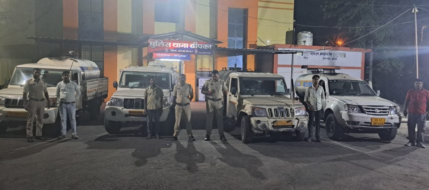 कोरबा/सीजी एनएन 24 न्यूज: कोरबा जिले में “सजग कोरबा – सतर्क कोरबा” अभियान के तहत कुसमुंडा और दीपका पुलिस ने संयुक्त कार्रवाई करते हुए अवैध डीजल परिवहन के खिलाफ बड़ी कार्रवाई की है। पुलिस ने बिना सुरक्षा ज्वलनशील पदार्थ (डीजल) ले जा रहे 8 वाहनों को पकड़कर कुल 5800 लीटर डीजल जब्त किया है।