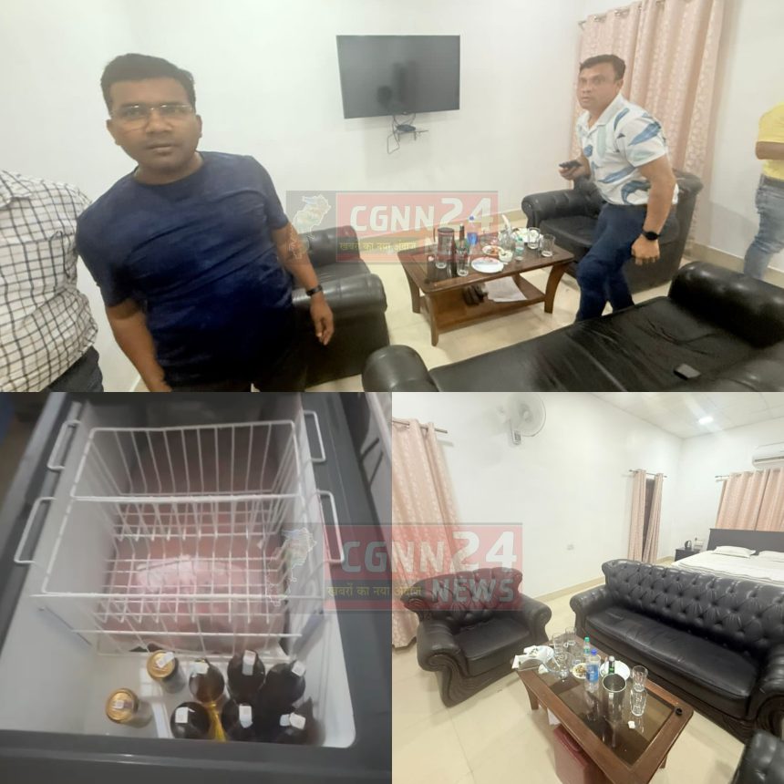 कोरबा/सीजी एनएन 24 न्यूज: कोरबा में सरकारी वीआईपी रेस्टहाउस के दुरुपयोग का मामला सामने आया है। डीएसपीएम के चीफ केमिस्ट गोवर्धन सिदार सहित चार अधिकारी रेस्टहाउस के एक कमरे में शराब पीते हुए पाए गए। कमरे से खाली शराब की बोतलें, चखना और पानी के सामान बरामद हुए, जबकि किचन के फ्रीजर में बियर की बोतलें भी रखी मिलीं।