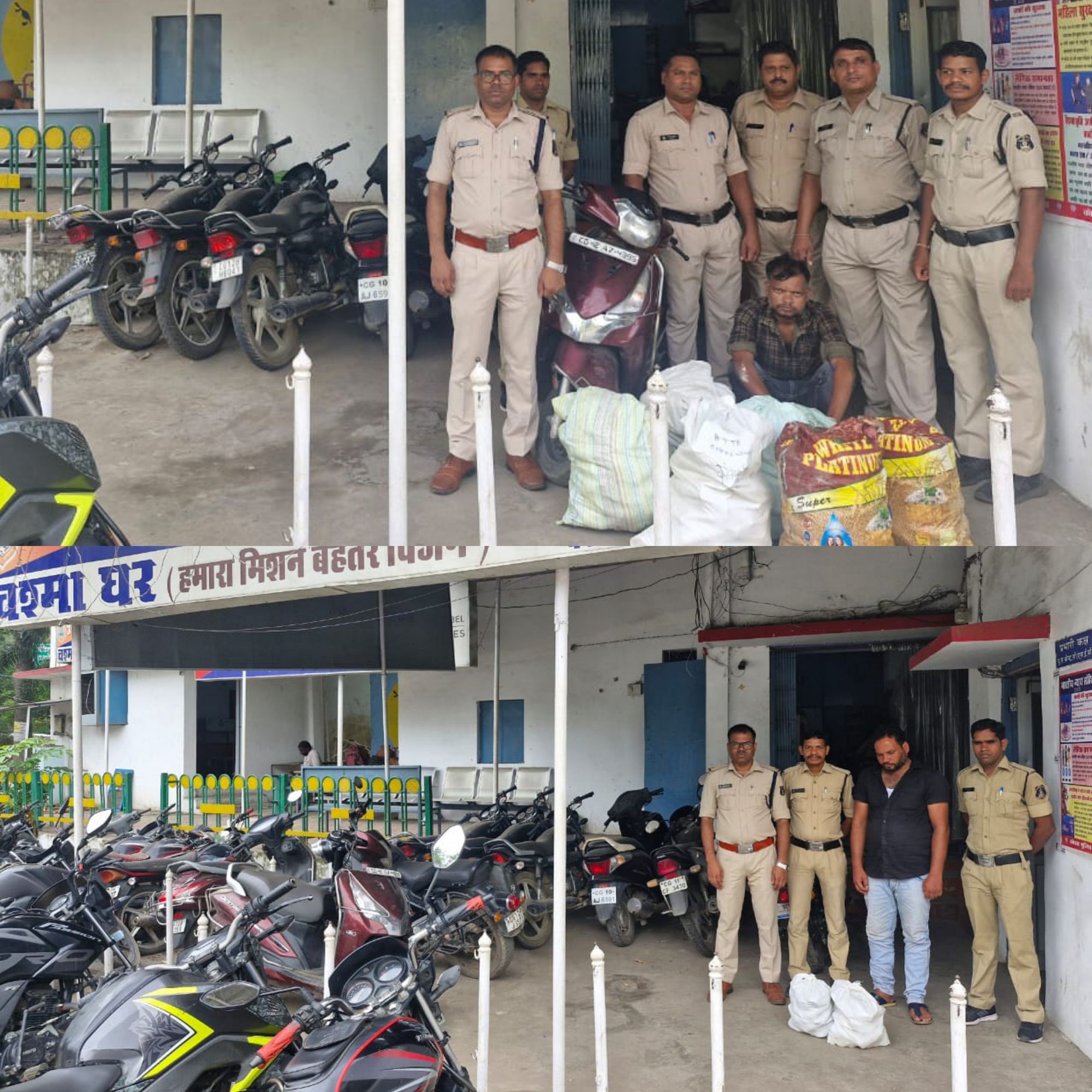 कोरबा/सीजी एनएन 24 न्यूज: 17 जुलाई को पुलिस टीम को मुखबीर के माध्यम से सूचना मिला की सीएसईबी के पंप हाउस कोरबा में रहने वाले अतुल कुमार गुप्ता उर्फ पिंटू एवं उसका भाई सुनील कुमार गुप्ता पंप हाउस के दो अलग-अलग जगह पर भारी मात्रा में देसी विदेशी शराब मोहर्रम शुष्क दिवस के अवसर पर अवैध रूप से बिक्री करने हेतु रखें हुए है। जिस पर तत्काल संज्ञान में लेते हुए चौकी प्रभारी सीएसईबी सहा.उप निरीक्षक सुरेश कुमार जोगी एवं साइबर सेल प्रभारी सहा.उप अजय सोनवानी द्वारा अपने मातहत स्टाफ़ के साथ त्वरित कार्यवाही करते हुए सीएसईबी पंप हाउस के दो अलग-अलग जगह पर रेड कार्यवाही किया गया। आरोपी अतुल कुमार गुप्ता उर्फ पिंटू पिता स्वर्गीय हरिशचंद्र गुप्ता उम्र 30 वर्ष निवासी पंप हाउस कॉलोनी 1B/51 चौकी cseb जिला कोरबा के कब्जे से देसी मदिरा प्लेन शराब, बियर, अंग्रेजी शराब कुल 97.13 बल्क लीटर एवं पुलिस की टीम के द्वारा एक और ठिकाने से सुनील कुमार गुप्ता पिता स्वर्गीय हरिशचंद्र गुप्ता उम्र 30 वर्ष निवासी पंप हाउस कॉलोनी 1B/51 चौकी cseb जिला कोरबा के कब्जे से देसी मदिरा प्लेन शराब, बियर, अंग्रेजी शराब कुल 10.815 बल्क लीटर जुमला कीमती 91,490/- बरामद होने पर आरोपीयों के कब्जे से विधिवत समक्ष गवाहो के जप्त कर कब्जा पुलिस लिया गया है, एवं आरोपीयों के विरुद्ध आबकारी अधिनियम के तहत अपराध पंजीबद्ध कर आरोपीयों को गिरफ्तार कर न्यायिक रिमांड पर माननीय न्यायालय पेश किया गया है।