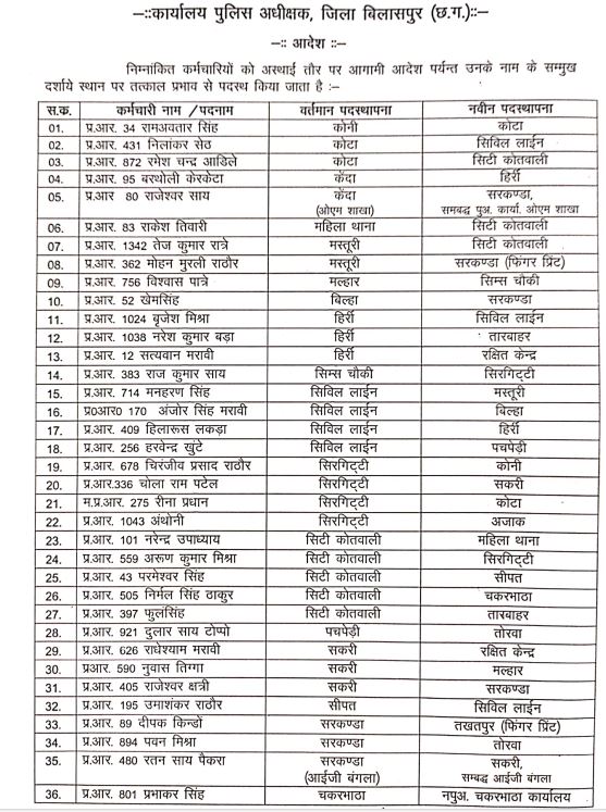 पुलिस विभाग में हुआ बड़ा फेरबदल, एसपी ने 356 पुलिसकर्मियों का किया तबादला, देखें लिस्ट…..
