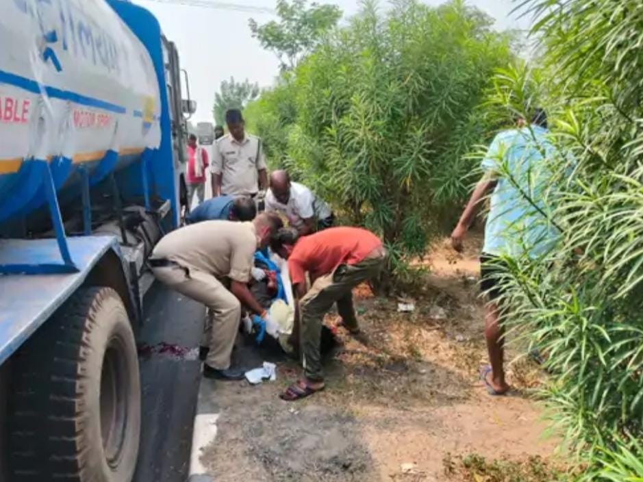 पेट्रोलियम टैंकर ने बाइक सवार को कुचला, मौके पर हुई दर्दनाक मौत