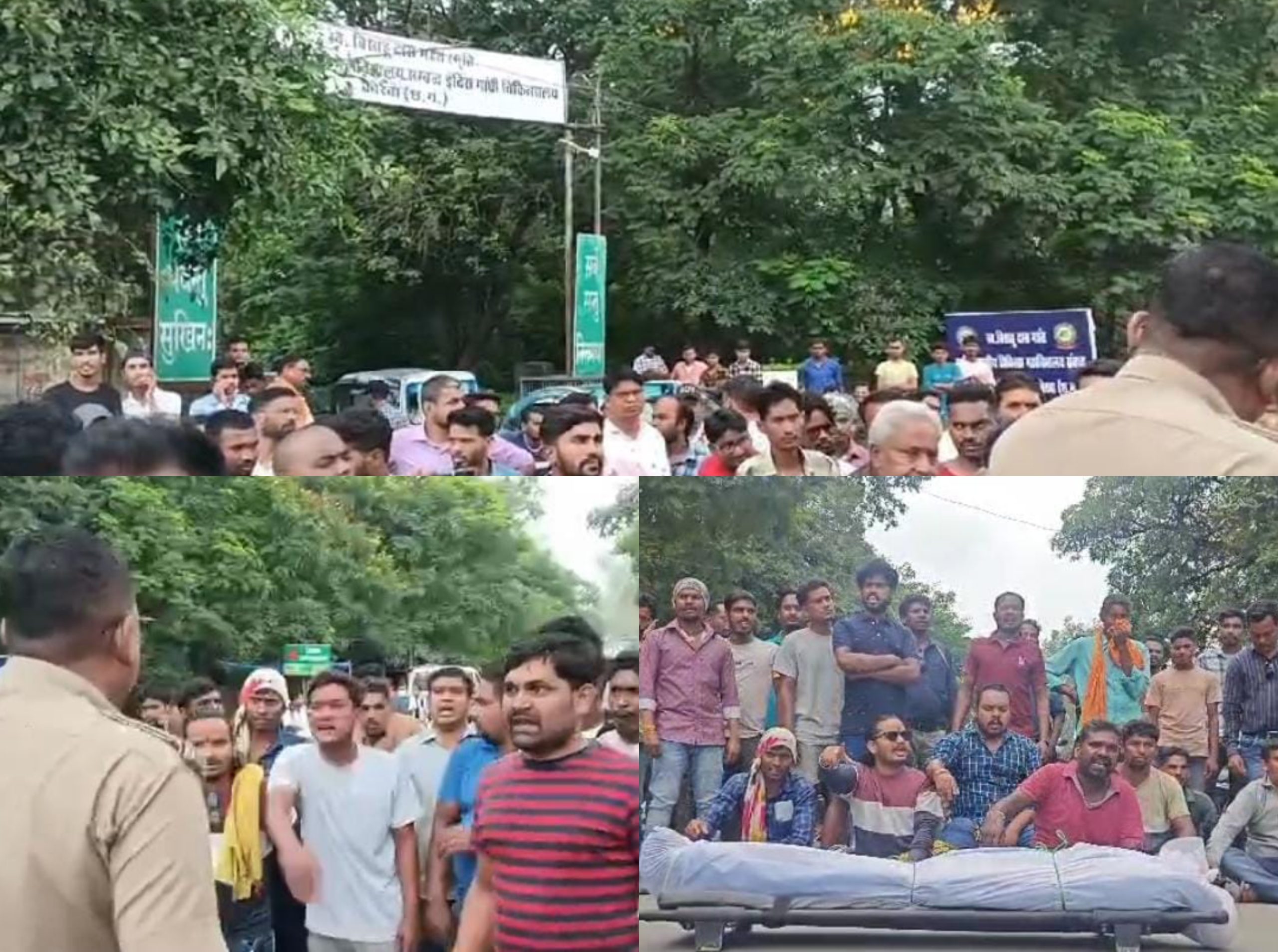 सड़क हादसे में गई जान, मेडिकल कॉलेज के सामने शव रखकर धरने पर बैठे परिजन, सड़क पर लगी जाम