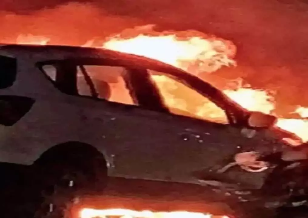 चलती गाड़ी में लगी भीषण आग, कार में 4 लोग थे सवार