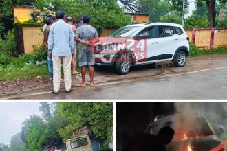 नशे में धुत तेज रफ्तार कार चालक ने खड़ी पिकअप को मारी ठोकर, कार में तीन लोग थे सवार, कार में लगी भीषण आग, देखें वीडियो….