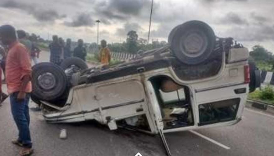 ओवरब्रिज के डिवाइडर से टकराकर पलटी बोलेरो वाहन, महामाया मंदिर से दर्शन कर लौट रहे थे कोरबा