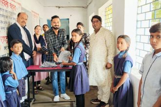 नई ड्रेस पाकर खुश हुए बच्चे, पार्षद सुजीत सिंह ने किया गणवेश वितरण।
